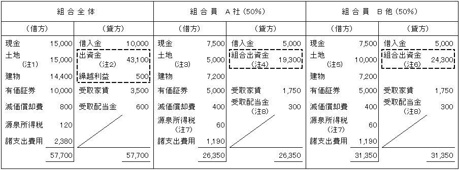 (注)組合自体は法人格を有するわけではないので、組合全体の処理はあくまでも参考であって、組合が行わなければならない処理ではない(「以下同じ」)。