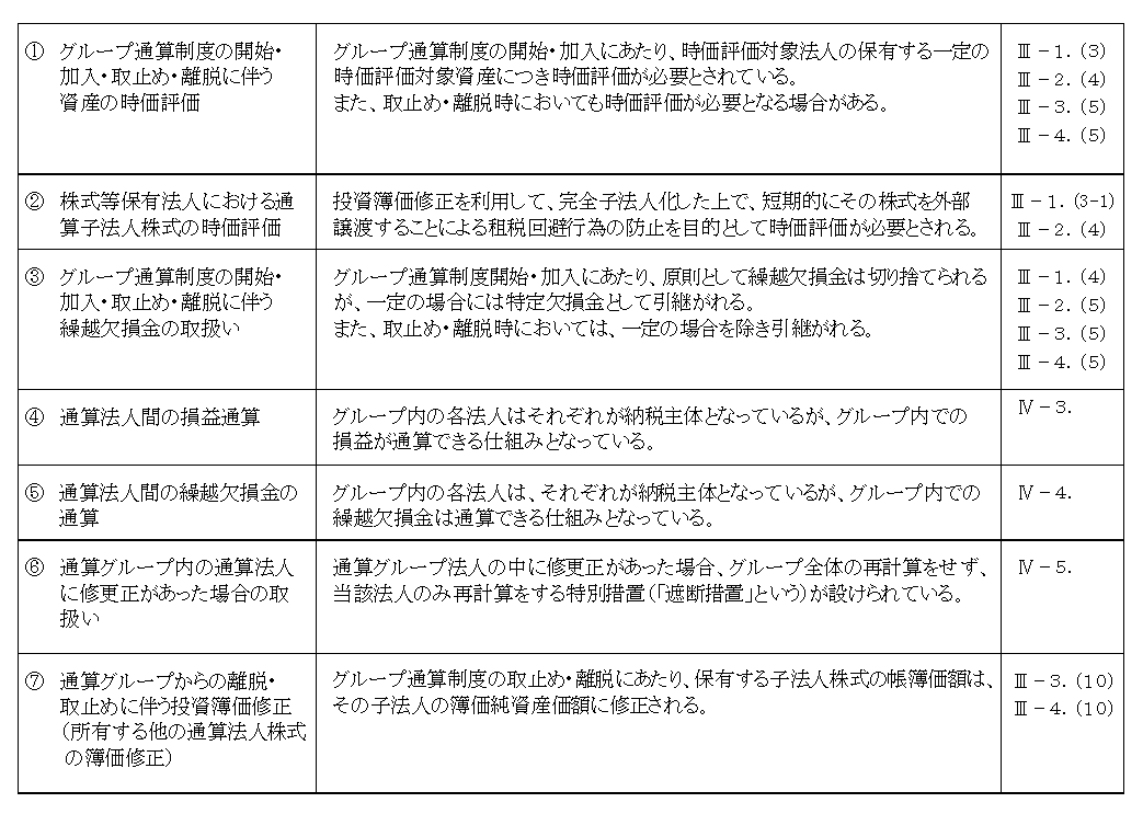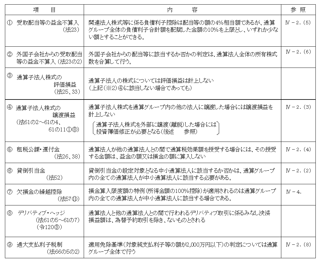 従って、本節においては各項目についての詳細な説明については省略し、単体課税との相違点を中心に解説することとする。