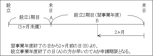 また、㋺設立事業年度が3ヶ月以下の場合は、設立2期目から開始する場合も事前の承認申請ができない。