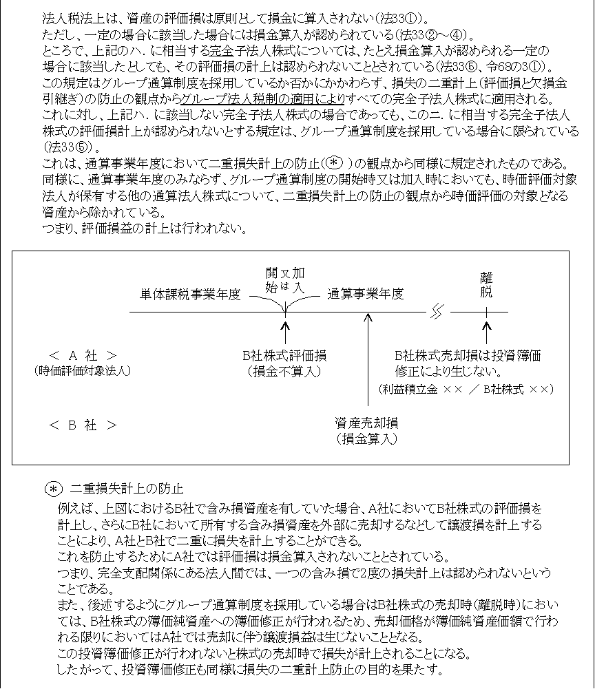 前述「(3)グループ通算制度開始・加入に伴う時価評価」参照。