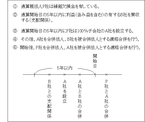 これは5年内設立法人の特例を利用して、通算親法人の欠損金の控除を目的とするなどの租税回避行為を防ぐために設けられた。