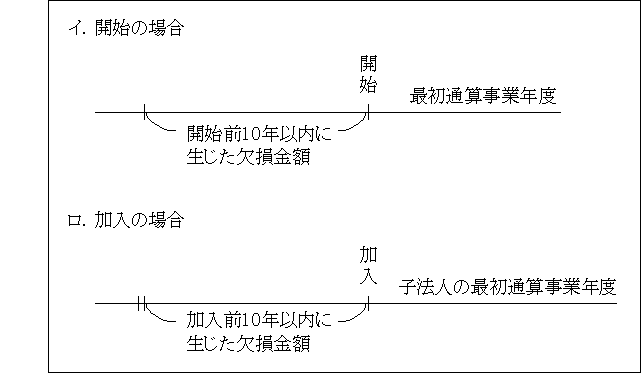 ①通算法人の最初通算事業年度開始の日前10年以内に開始(又は加入)した各事業年度において生じた欠損金額